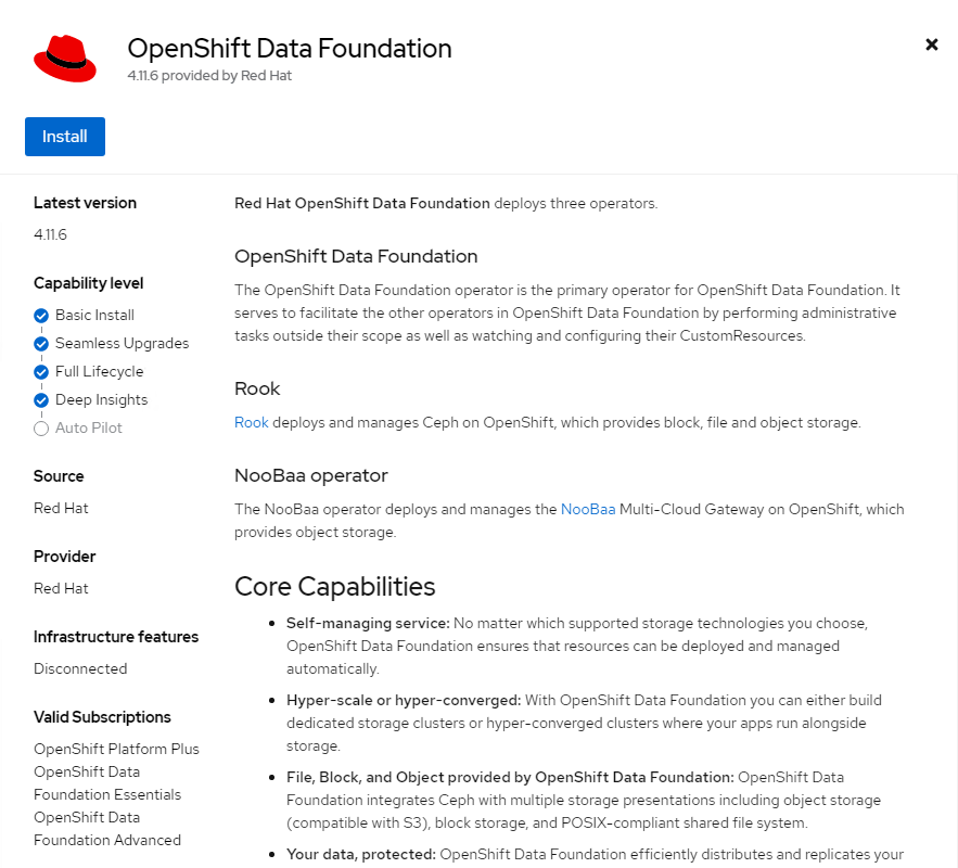 <figure><img src="https://content.gitbook.com/content/TrewSrS6CmLdahLrZUjj/blobs/xJ8WZAiOnqsOgMBdttNp/image.png" alt=""><figcaption><p>Installed ODF Operator</p></figcaption></figure>