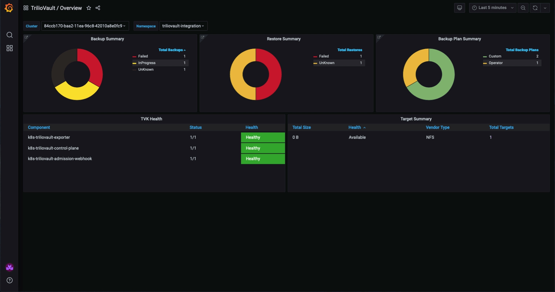 The Trilio Grafana dashboards provide detailed insight into the following aspects of Trilio's Backup and Restore operations: