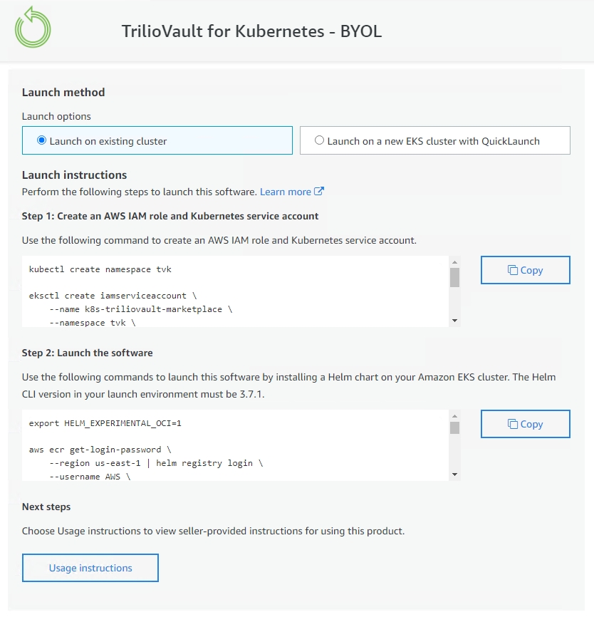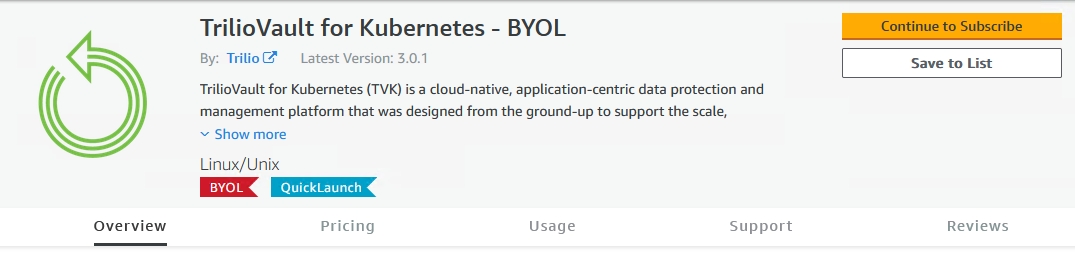 Getting Started with Trilio for AWS Elastic Kubernetes Service (EKS)