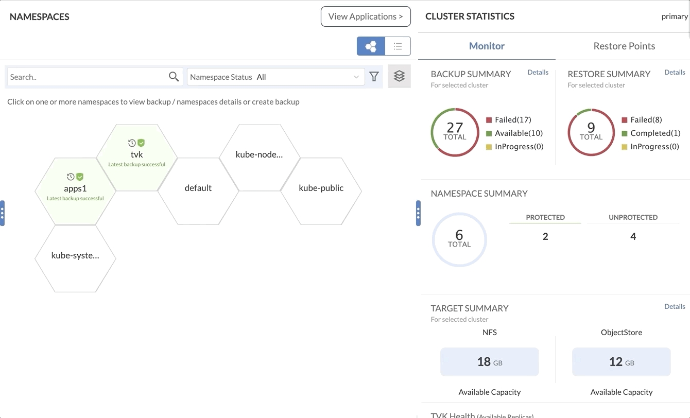 Backups can be restored by name if within the same cluster or namespace scope of T4K