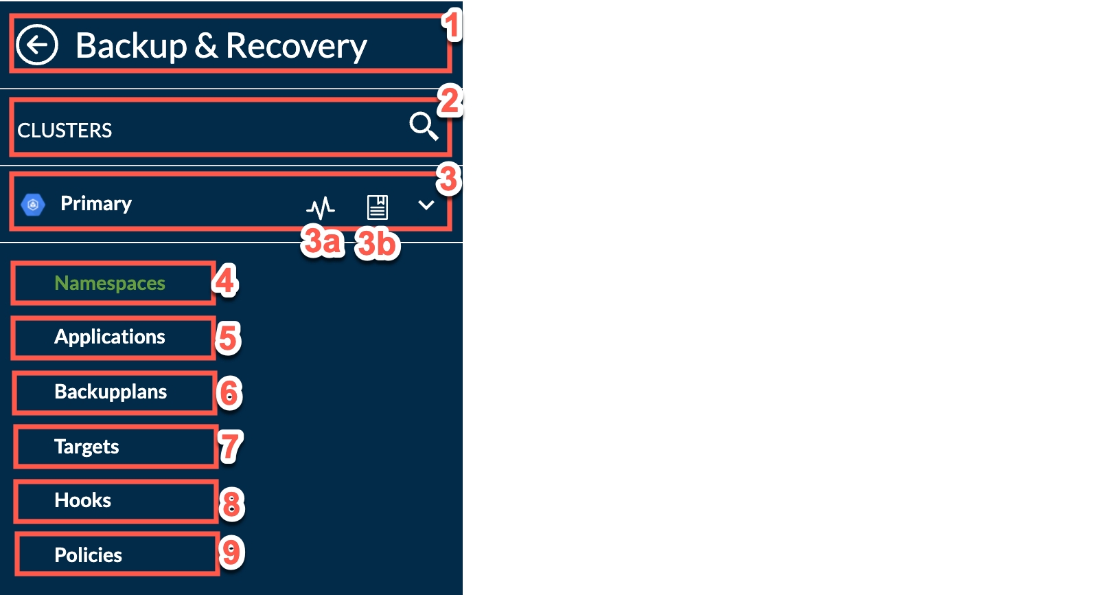 This page enables users to manage backups, restores, configure targets, configure the applications within the protection scope, and set associated policies.