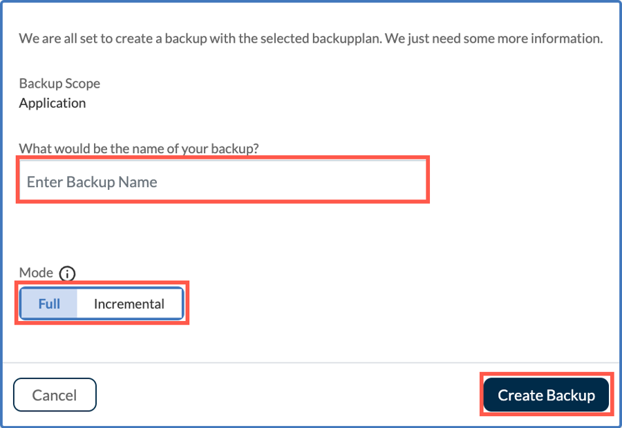 In the window displayed, type a meaningful name for your new backup.
