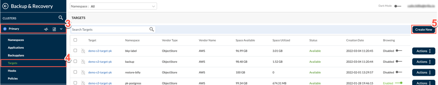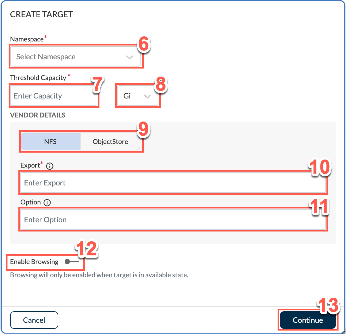 12. Use the Enable Browsing switch to enable or disable browsing for available targets.