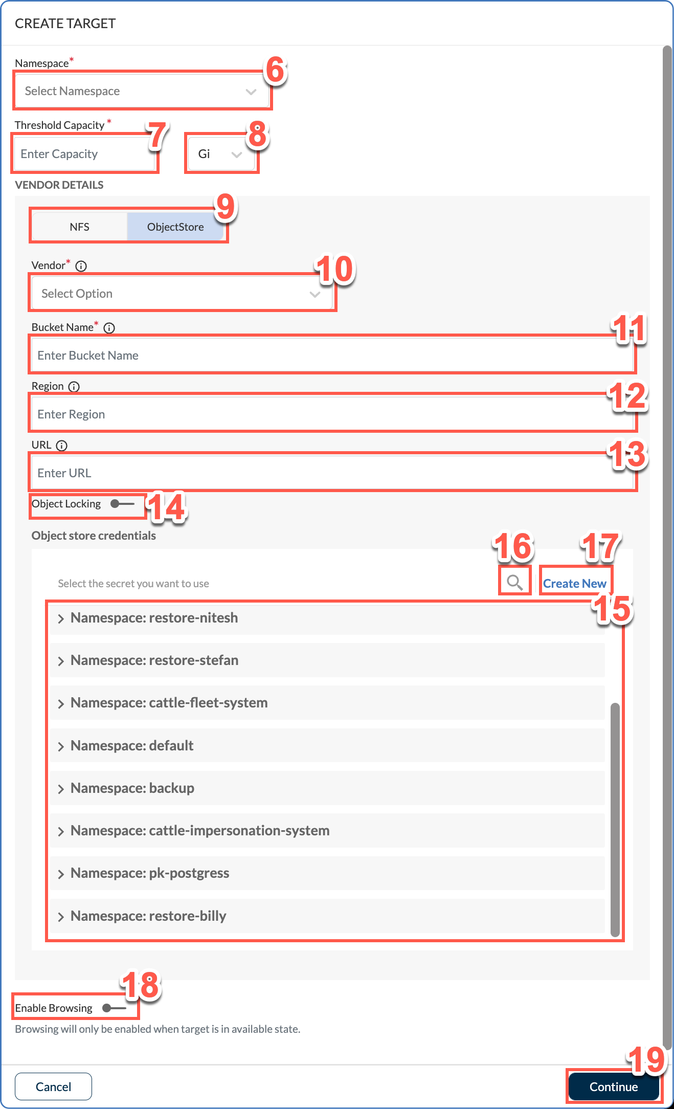 11. In this text field, type the name of the bucket within object store.