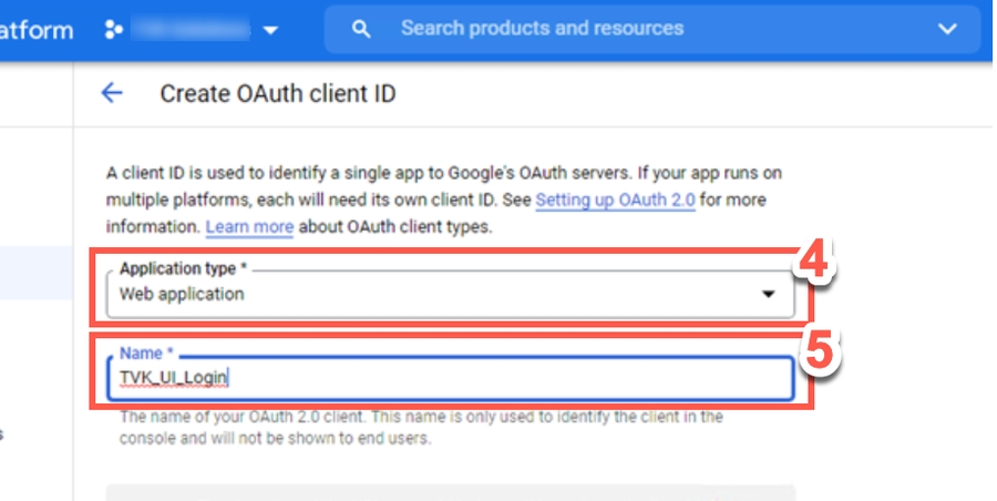 Type a meaningful name for application; i.e. TVK-UI-LOGIN.