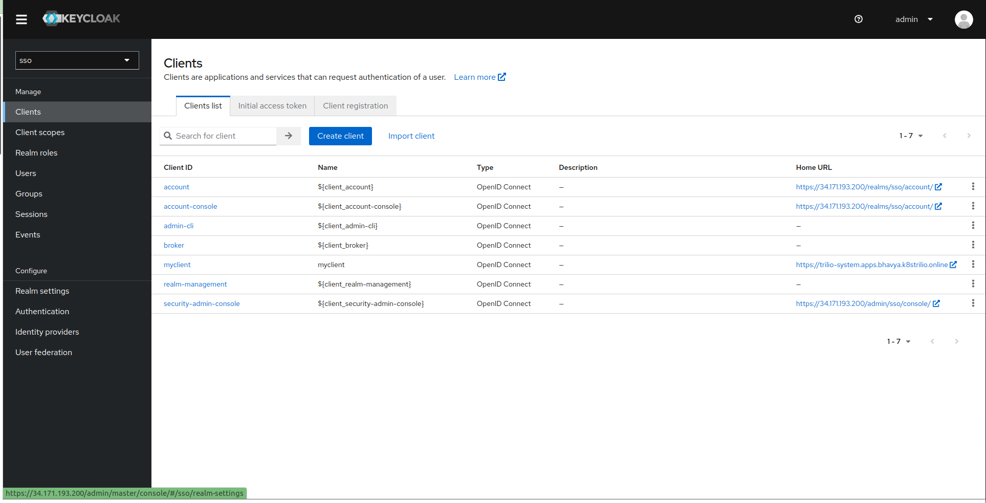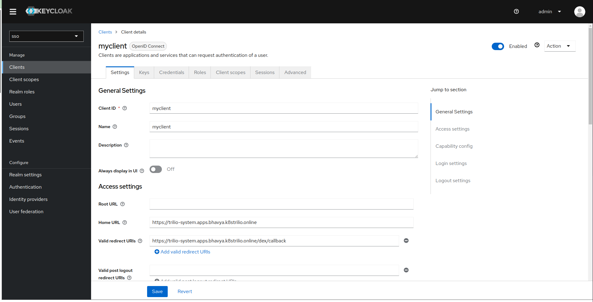 Select the client and configure it with TVK URL and callback URL https://<TVK_URL>/dex/callback.