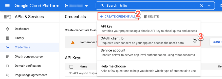 From the dropdown displayed, click OAuth client ID.