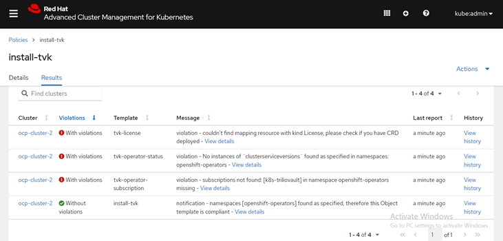 Integration between Trilio for Kubernetes (T4K) and Red Hat Advanced Cluster Management for Kubernetes (RHACM) provides an automated solution to protect containers, Kubernetes, and cloud infrastructure using the policy framework. This powerful framework allows users to govern multiple clusters in the data center using policies. The T4K policies enable the users to protect their Openshift clusters and ensure continued protection for existing and new clusters.