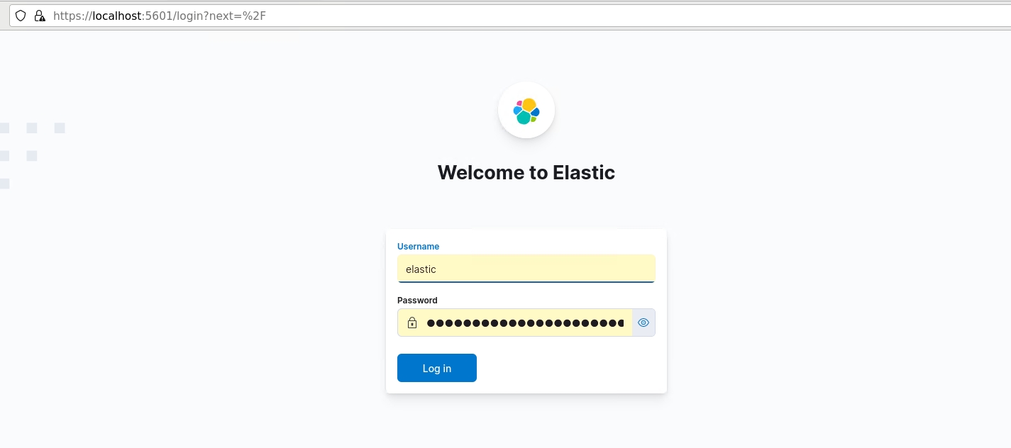 https://localhost:56018. Use the username as elastic and password generated in elasticsearch cluster deployment