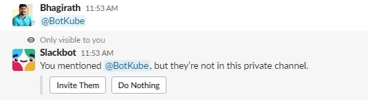 Once the BotKube application is installed to the Slack workspace, you can see BotKube user (@Botkube) present. Add this Botkube user to your slack channel from where you want to monitor the T4K resources.