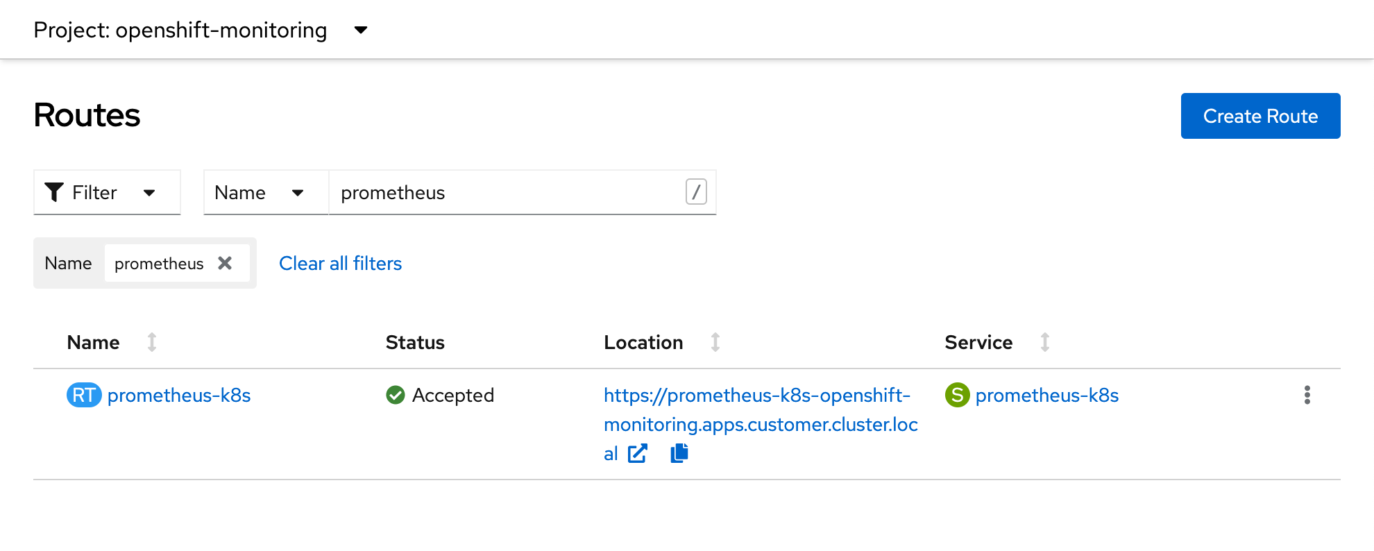 Locate the OpenShift Prometheus Route in the openshift-monitoring namespace