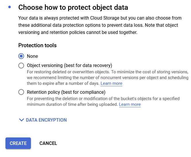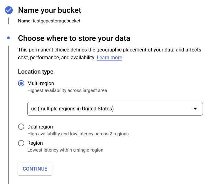 Name the storage bucket and choose a region.