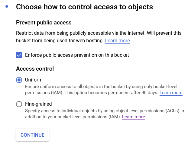 Create a storage bucket from the Google cloud console.
