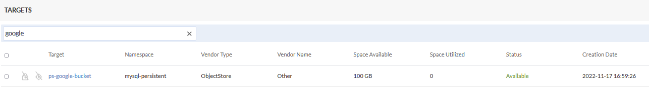 Confirm that Target Status is Available, indicating that the Backup Target has been created successfully.