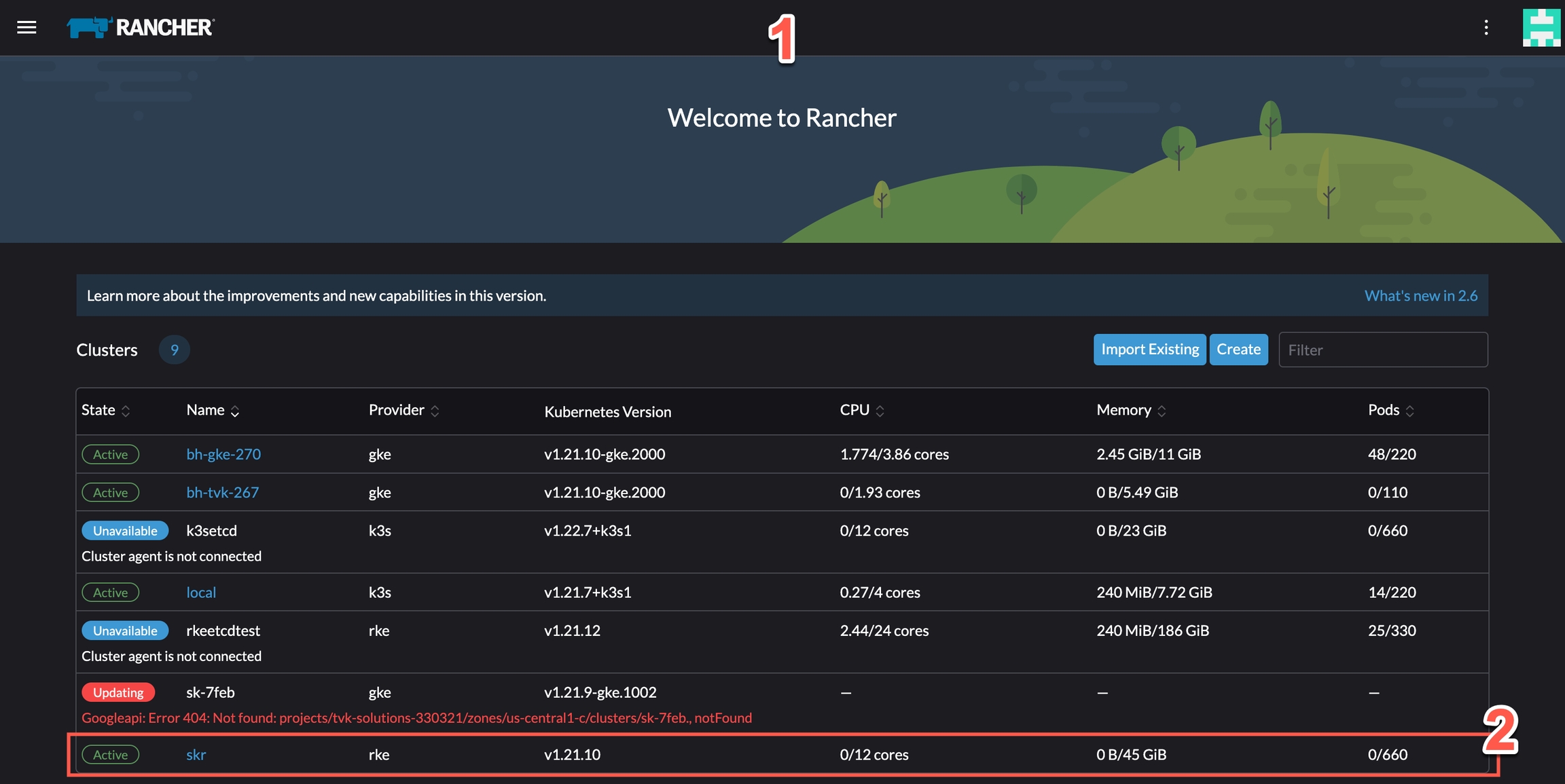 2. From the list of cluster deployments, click the name of an RKE cluster.