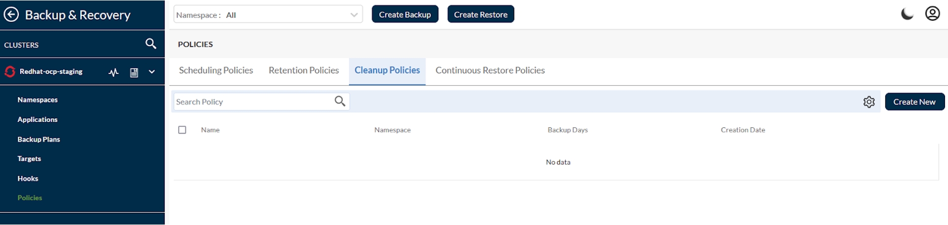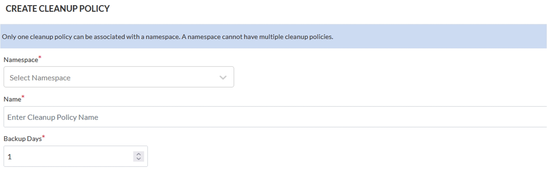 This action creates the cleanup policy for the given namespace. Users may have to repeat the steps for each namespace. However, to define a cluster-wide cleanup policy, please refer to the cleanup policy.