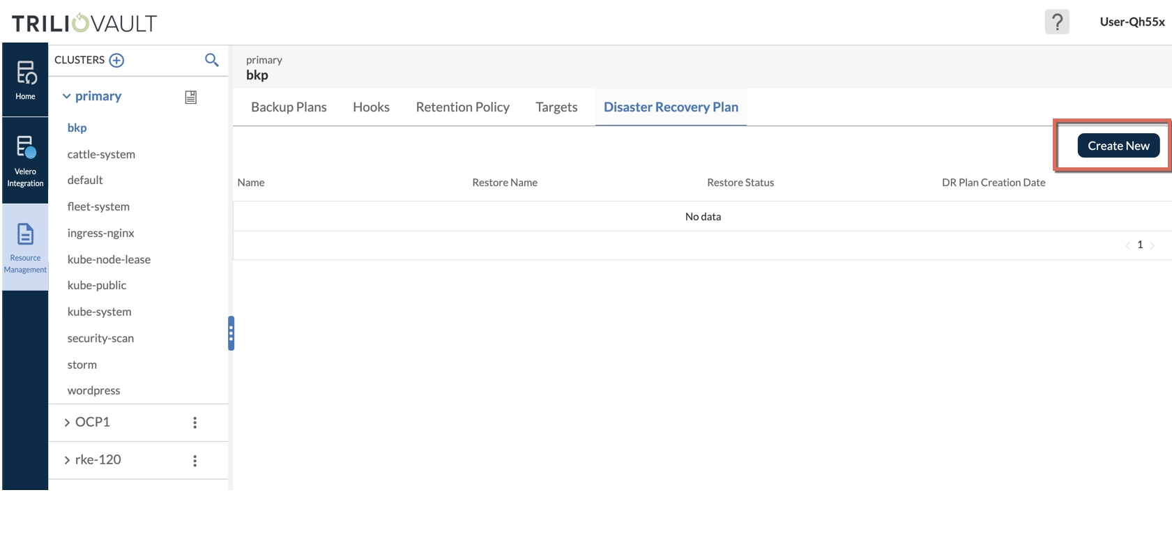 DRPlans are created from the resource management page of a particular cluster.