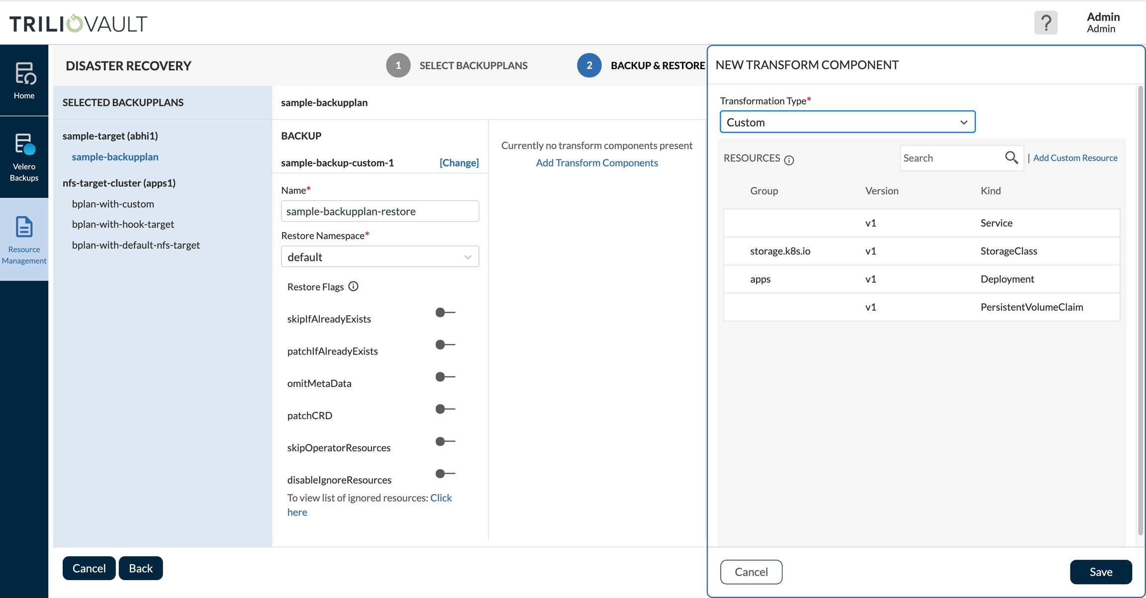 With these challenges in mind, T4K provides a DRPlan feature which allows users to restore multiple applications or namespaces as part of a single workflow to restore business operations. This feature is provided as a simple click-driven solution through the management console for constructing the DR plan and executing it within a destination cluster.