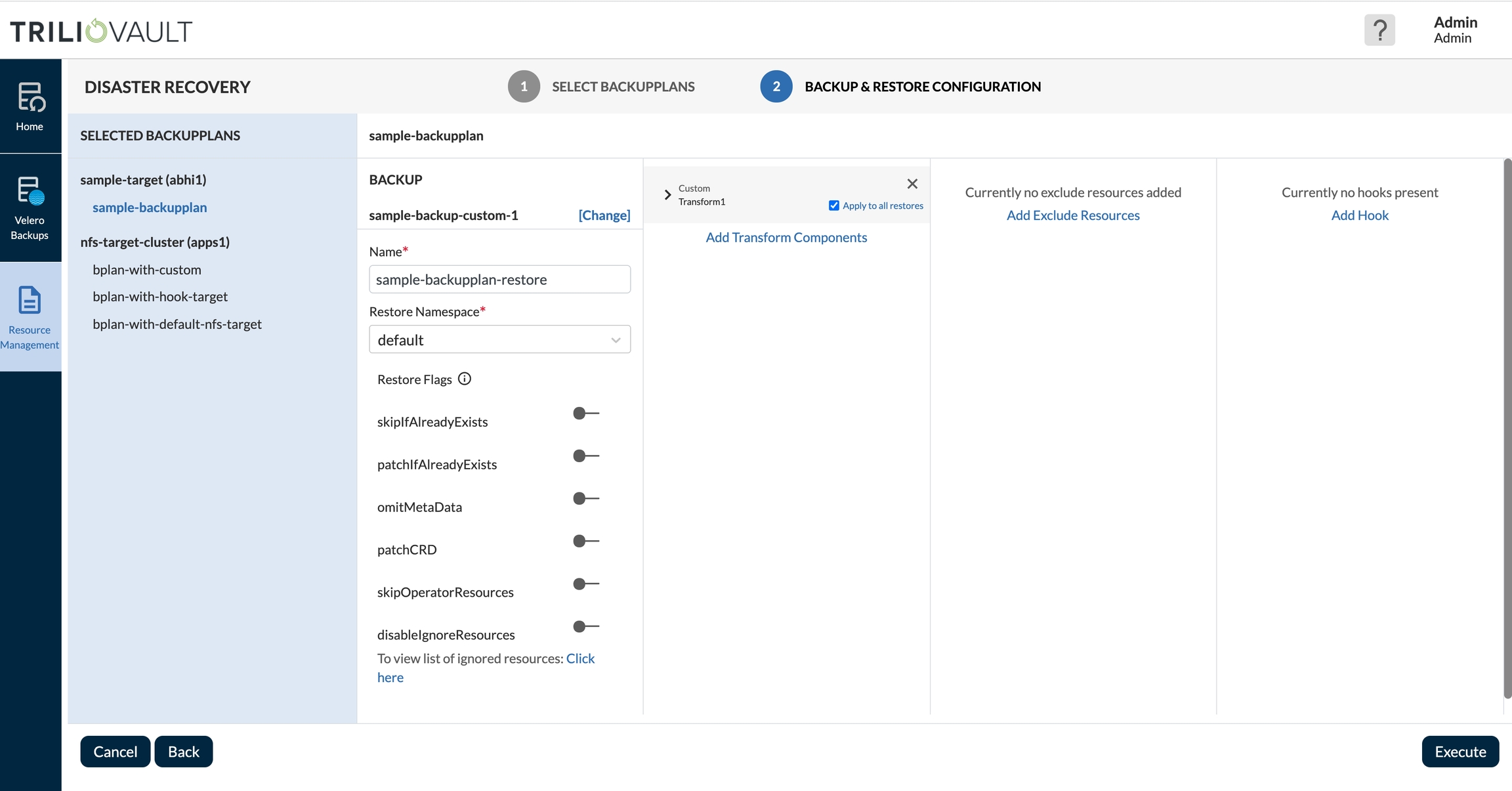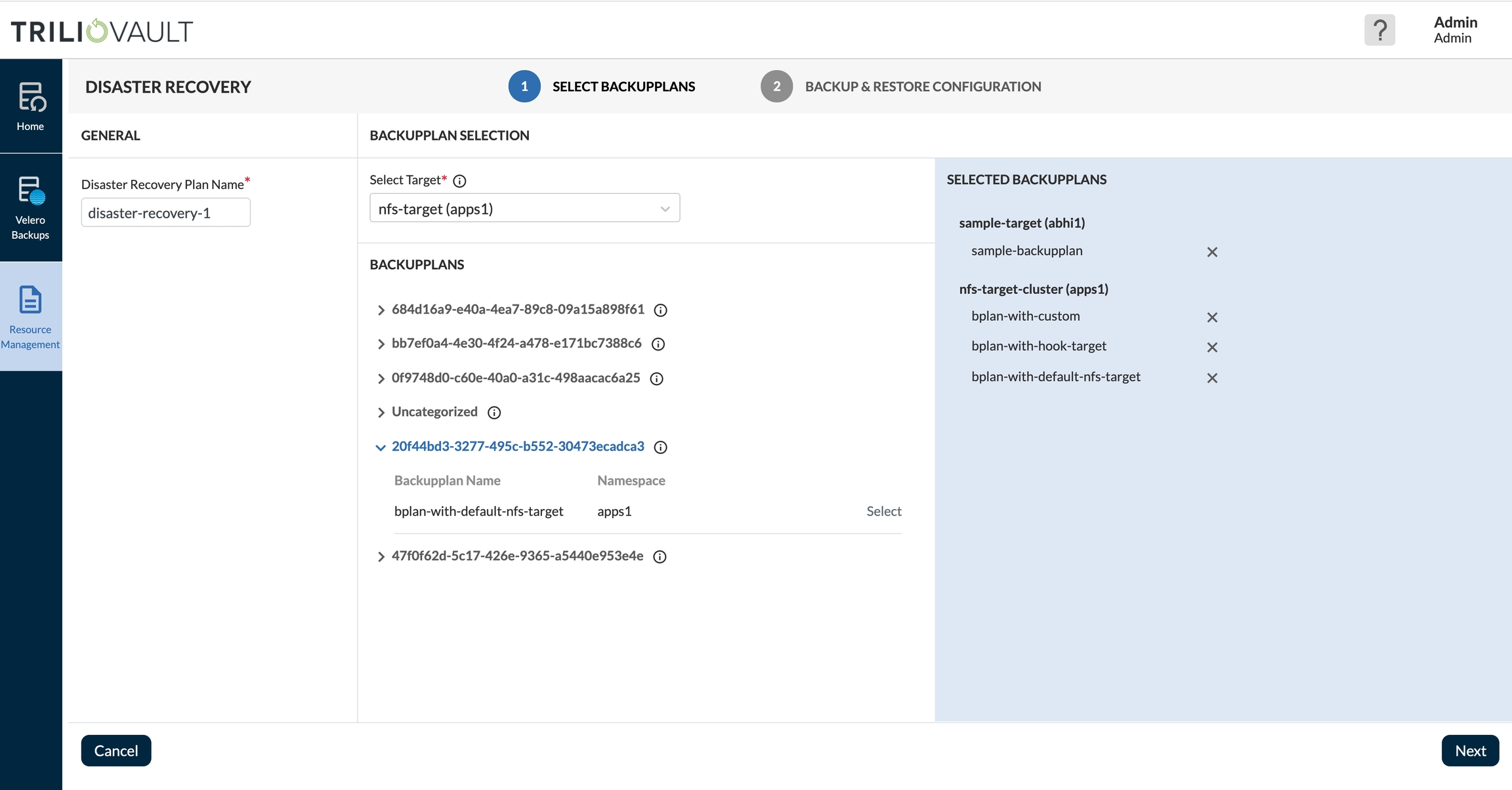 Users can now create and execute various DRPlans for different tiers of applications based on criticality from multiple targets or backup locations. The DRPlan is created and saved at the destination cluster - which means that the plan can be executed even when the source cluster is not available. While marketed as a disaster recovery workflow, this same workflow can be used to for application migration and test/dev purposes as well (though these will have their own workflows in the future).