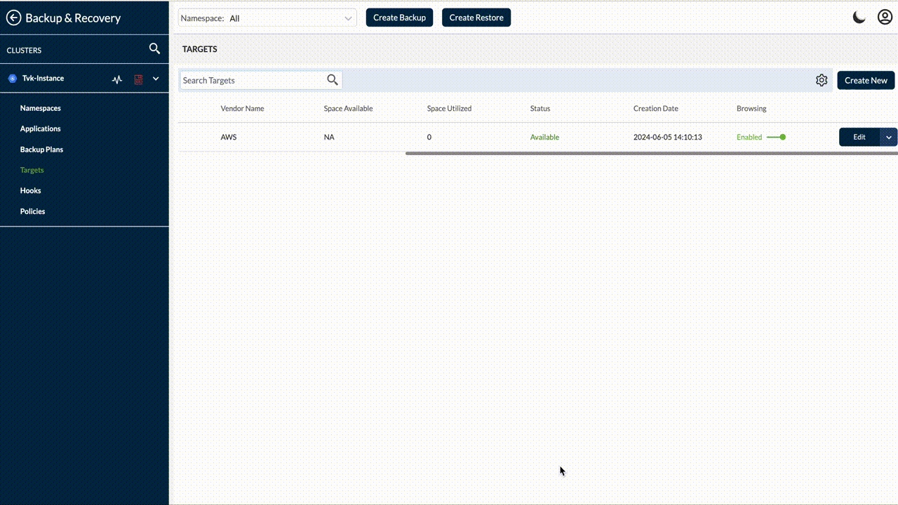 User need to configure the Master Encryption key on the cluster where restore operation will be running. After enabling target browsing, user need to select the backup to restore and create the secret with same Encryption Key(which was used at the time of Backup). Refer following video.