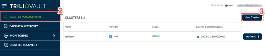 A Trilio license is required for running backups. A valid license must be available on the system before a scheduled or on-demand backup is triggered. To learn more about licensing and different licensing options, refer to Licensing. To update a license for an existing cluster, perform the following actions: