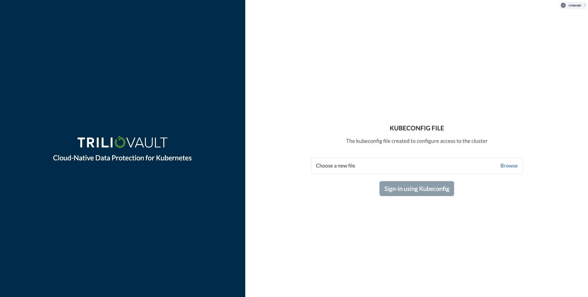 Independent of which install method you employ, when the installation is complete and all pods are up and running, you can access the Trilio web UI by pointing your browser to the configured Node Port.