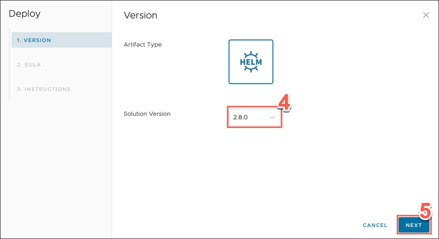 In the Deploy wizard displayed, confirm that the version is correct.
