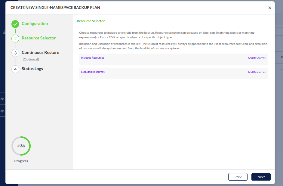 Objects - The Objects tab provides a view of all Kubernetes objects/resources in your cluster that can be backed up. You can select multiple objects to protect from single Namespace
