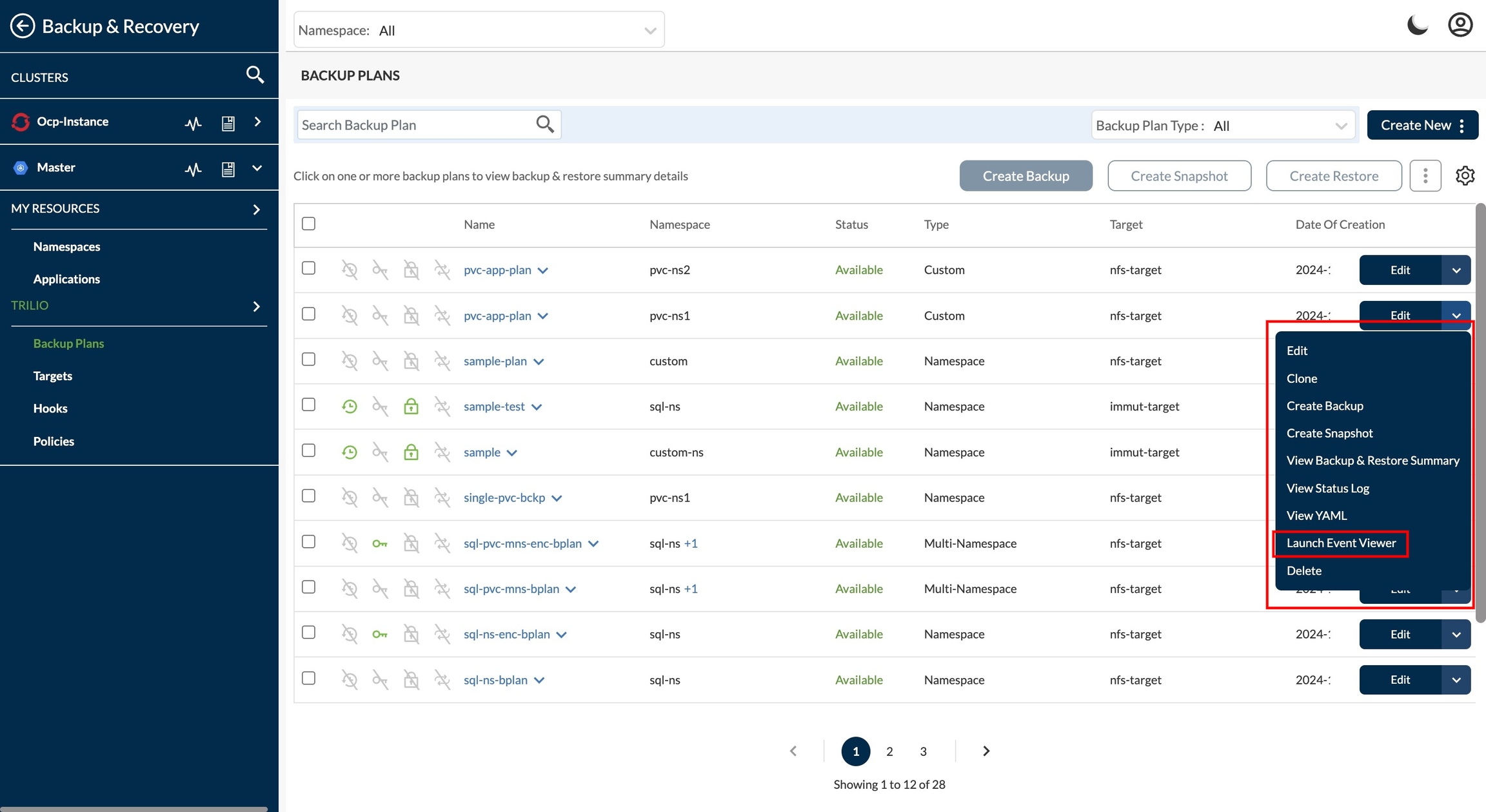 restore, backup, resource_namespace, status, target, cluster, kind