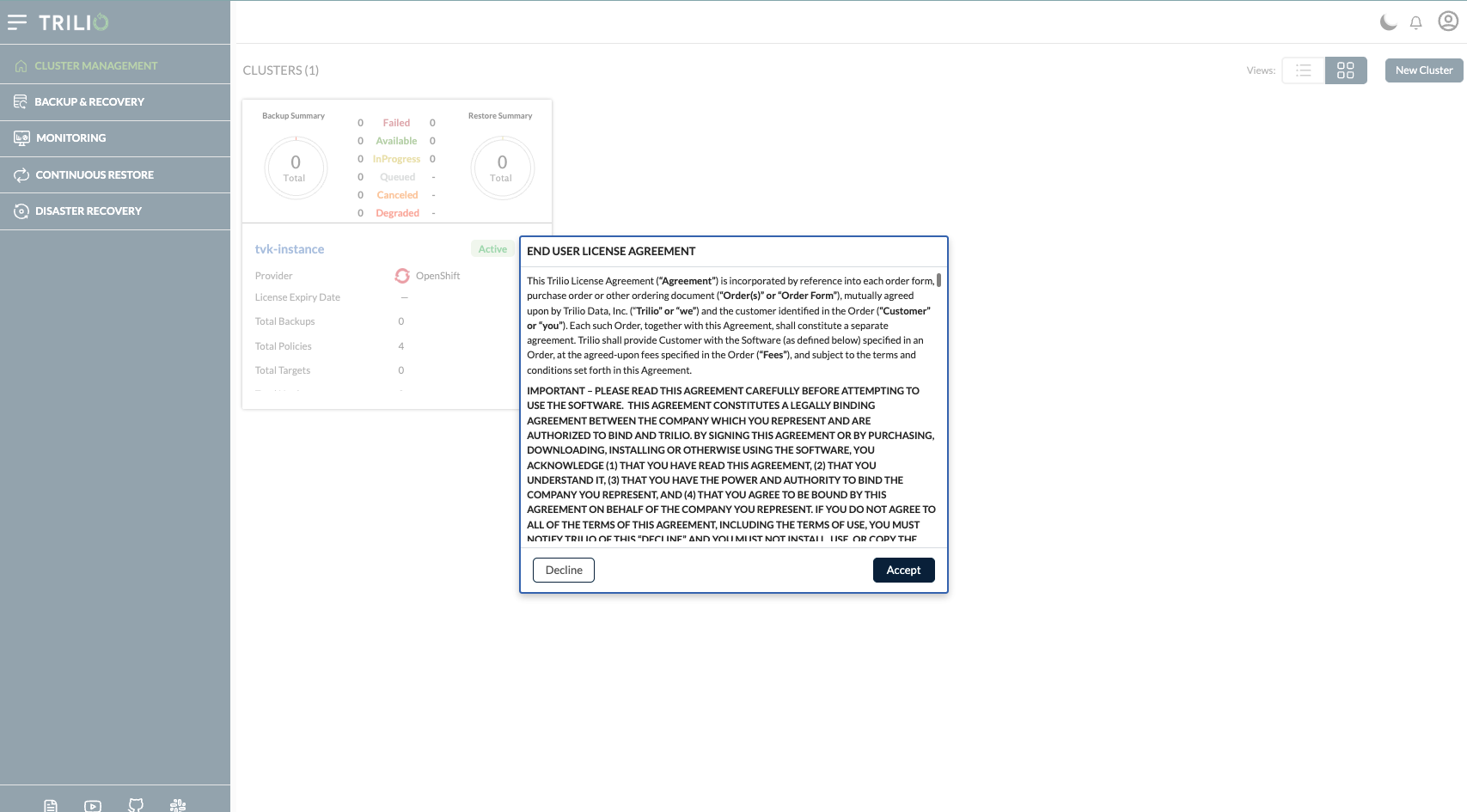5. [Licensing Trilio for OpenShift](#licensing-trilio-for-openshift)