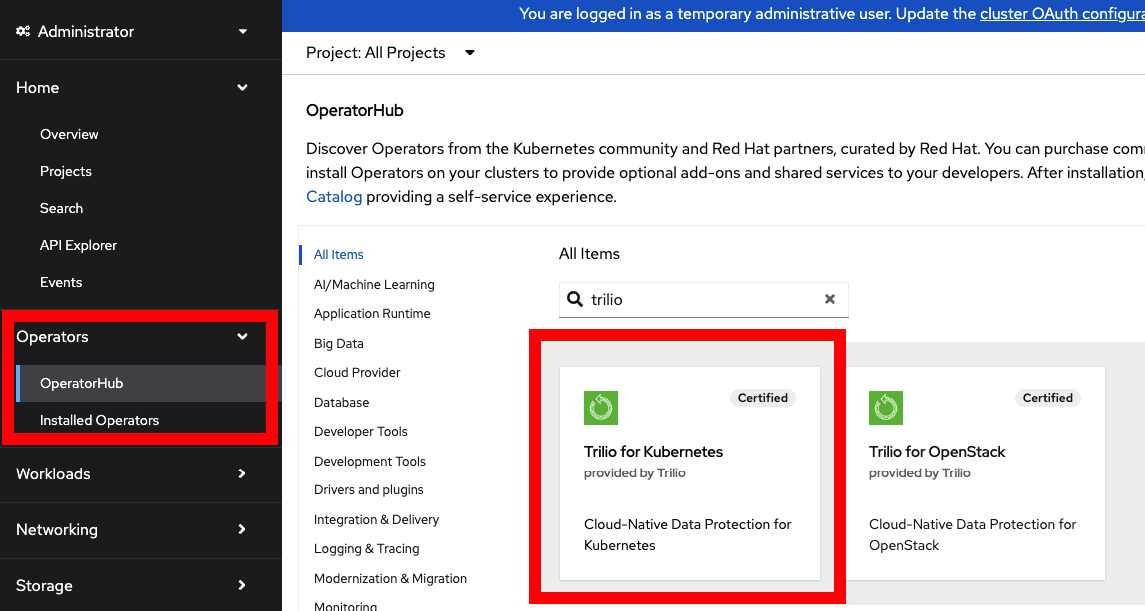 In this tutorial, we'll show you how to install and test operation of Trilio for OpenShift on your Red Hat OpenShift cluster.
