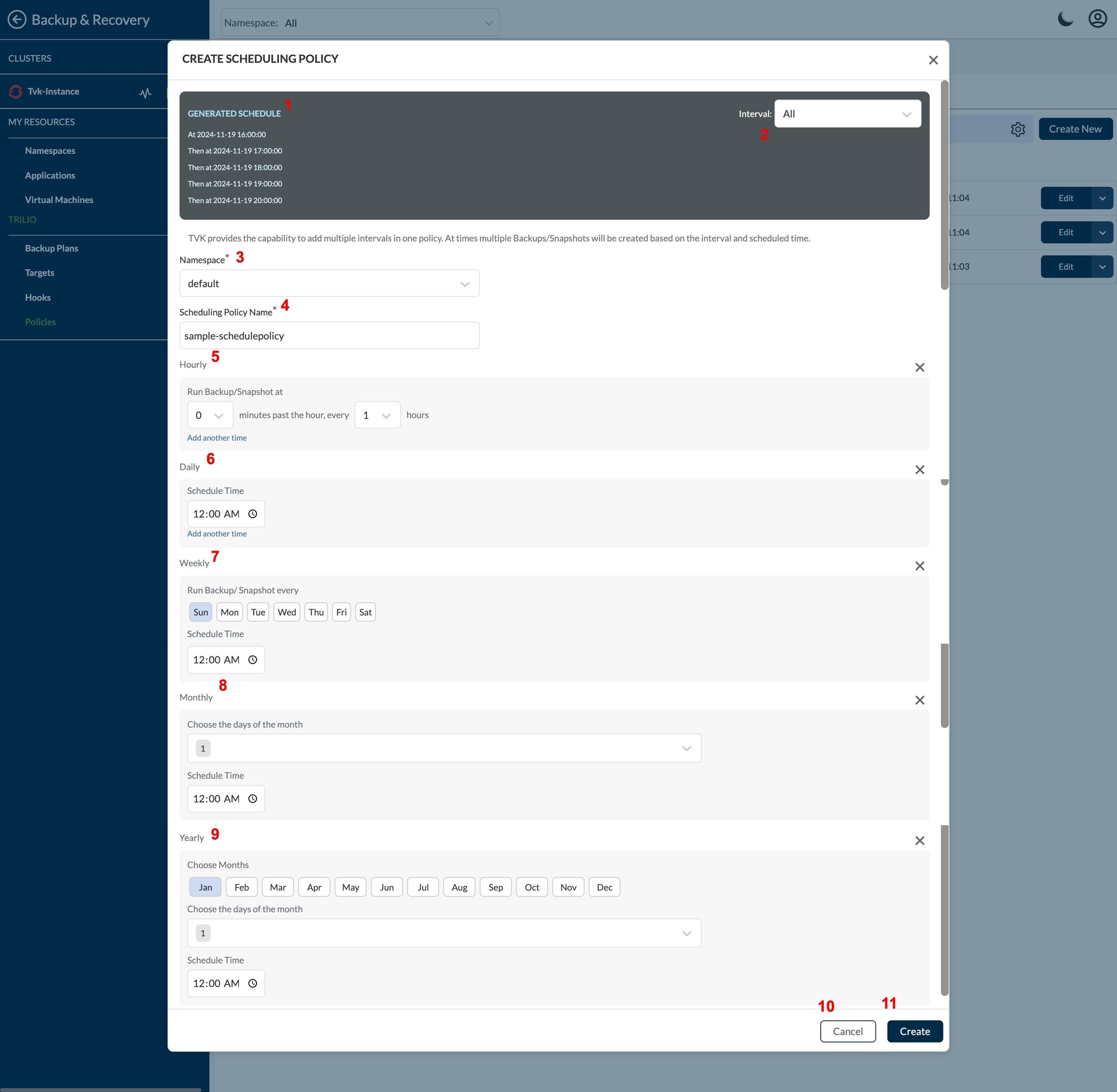 Namespace - Select this is in which namespace user will create the Schedule Policy.