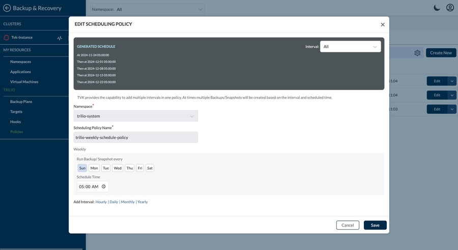 Edit Schedule policy page