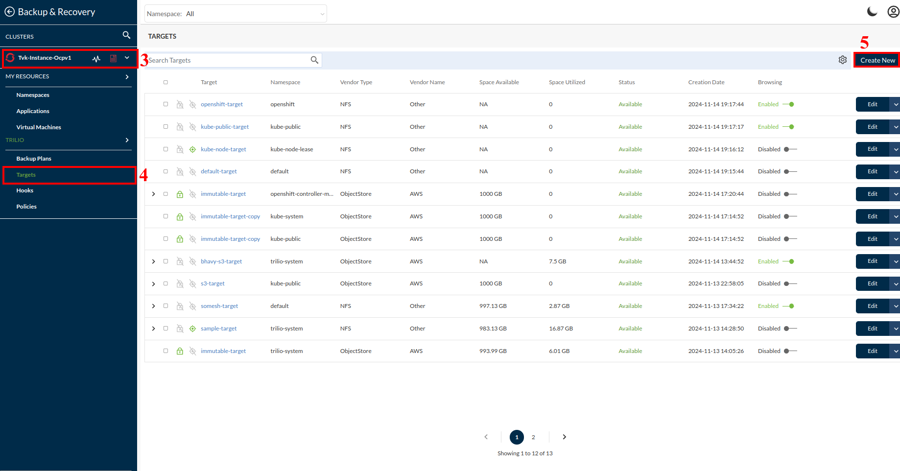 12. Use the Enable Browsing switch to enable or disable browsing for available targets.